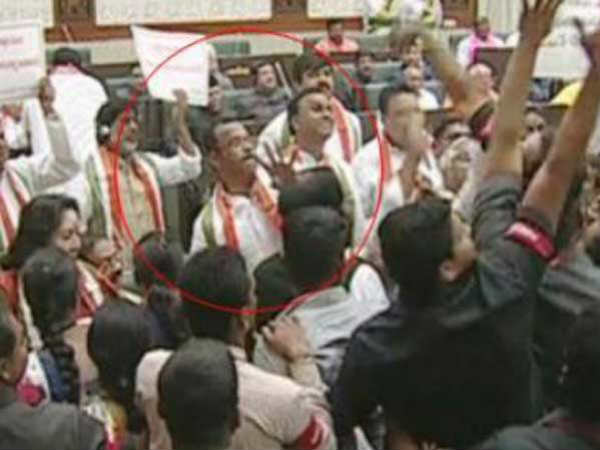 తెలంగాణ అసెంబ్లీ బడ్జెట్ సమావేశాల ప్రారంభం సందర్భంగా గవర్నర్ ప్రసంగం సాగుతున్న సమయంలో కాంగ్రెస్ పార్టీ ఎమ్మెల్యే కోమటిరెడ్డి వెంకట్ రెడ్డి హెడ్ఫోన్ విసరడంతో శాసనమండలి ఛైర్మెన్ స్వామిగౌడ్ కంటికి గాయమైంది.