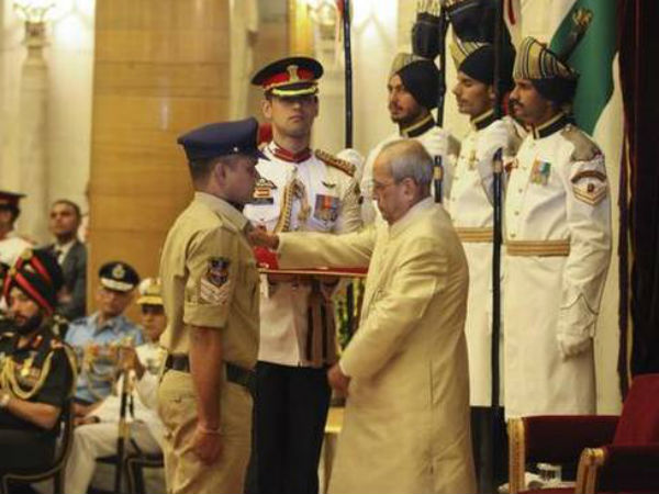 అసామాన్య ధైర్యసహాసాలు చూపిన తెలంగాణ రాష్ట్ర కౌంటర్ ఇంటెలిజెన్స్ విభాగం హెడ్కానిస్టేబుల్ కుక్కడపు శ్రీనివాసులు.. ప్రతిష్ఠాత్మకశౌర్యచక్ర పురస్కారాన్ని రాష్ట్రపతి ప్రణబ్ ముఖర్జీ చేతుల మీదుగా అందుకున్నార