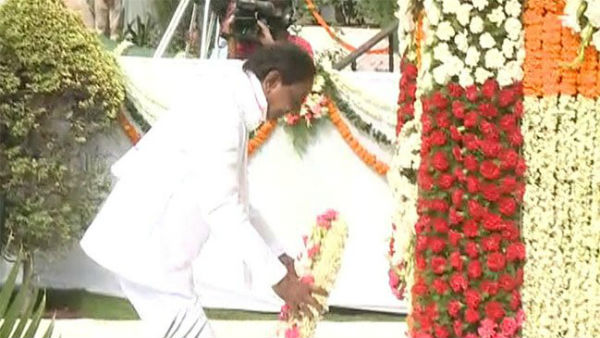 గన్ పార్క్ వద్ద అమరులకు నివాళులర్పించిన కేసీఆర్