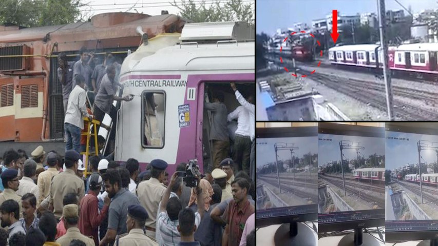 ఆగివున్న ఎక్స్ప్రెస్ రైలును ఢీకొట్టిన ఎంఎంటీఎస్ రైలు వెనుక భాగం కాస్త పైకి లేచి పక్కకు ఒరిగింది. దీంతో ఎంఎంటీఎస్ రైలులో ఉన్న పలువురు ప్రయాణికులు గాయపడ్డారు. ఒక్కసారిగా ప్రమాదం జరగడంతో ప్రయాణికులంతా బెంబేలెత్తిపోయారు. రైలు దిగి బయటకు పరుగులు పెట్టారు. ప్రస్తుతం ఈ ప్రమాదానికి సంబంధించిన వీడియో ఇంటర్నెట్లో వైరల్గా మారింది.