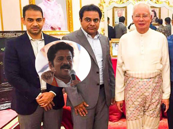 'స్కాములతో నిండిపోయిన కాంగ్రెస్ పార్టీలో చేరి స్కాం స్టార్లతో తిరుగుతున్నానని కేటీఆర్ తనపై రంకెలేస్తూ కేటీఆర్ రంకెలేస్తూ ఆవేశపడ్డారు. అయితే ఎవరు స్కాం స్టార్లతో తిరుగుతున్నారో చెప్పడానికి ఇదిగో తిరుగులేని సాక్ష్యం.. 2016 జులైలో పెట్టుబడుల సేకరణ పేరుతో కేటీఆర్ మలేషియాకు వెళ్లారు. అప్పటి ఫోటోనే ఇది' అంటూ రేవంత్ చెప్పుకొచ్చారు.