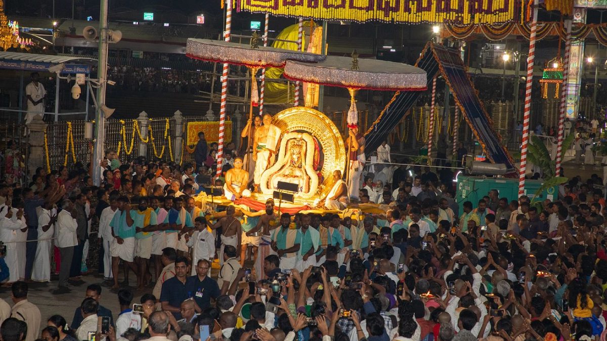 ఈ వేడుకలను తిలకించడానికి భక్తులు భారీ సంఖ్యలో తిరుమలకు తరలివచ్చారు. నాలుగు మాడ వీధుల్లోని గ్యాలరీలన్నీ పూర్తిగా నిండిపోయాయి. వారికోసం గ్యాలరీల్లో ప్రత్యేకంగా తాత్కాలిక షెడ్లను నిర్మించారు టీటీడీ అధికారులు. శ్రీవారి సేవకులు అన్నప్రసాదాలు, మంచినీరు పంపిణీ చేశారు.