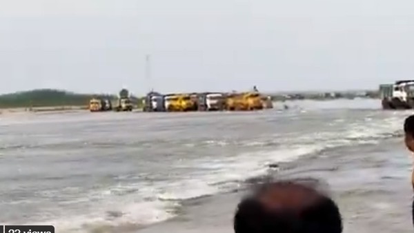 కృష్ణా నదిలో చిక్కుకున్న 200 లారీలు-ఇసుక తెచ్చేందుకు వెళ్లి-పడవల్లో డ్రైవర్లు బయటికి