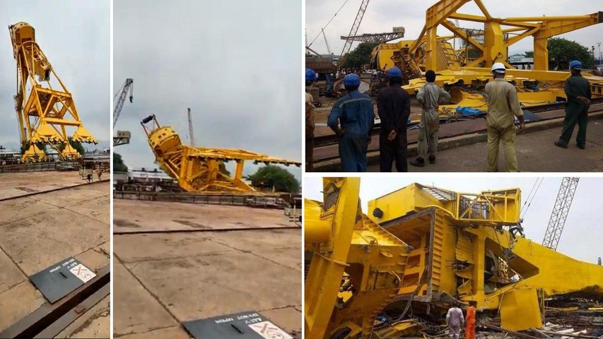 సాధారణంగా పెద్ద పెద్ద కంటైయినర్లను తీసుకొచ్చేందుకు క్రేన్లను వాడుతుంటారు. ఇవాళ కంటైనర్ తీసుకొచ్చారో లేదో తెలియదు. కానీ క్రేన్ ఒక్కసారిగా కుప్పకూలి పోయింది. అది కూలడానికి కారణం కూడా తెలియదు. ఆ సమయంలో క్రేన్ కింద పది మంది వరకు ఉన్నారు.