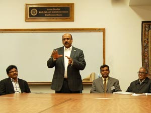 గురజాడతో మొదలుకొని ఇప్పటి దాకా వివిధ కవుల తెలుగు కవితల ఆంగ్ల అనువాదాలను వినిపిస్తూ ఆయన సోదాహరణ ప్రసంగం చేశారు. తెలుగు సాహిత్యంలో సామాజిక జీవితంలో కేవలం ఒక రచయితగానే కాకుండా సామాజిక శక్తిగా గురజాడ ప్రభావం ఎప్పుడూ ఉంటుందని, గురజాడ అంటే ఆధునికతకి పర్యాయపదామి ప్రముఖ రచయిత, టెక్సాస్ విశ్వవిద్యాలయం ప్రొఫెసర్ అఫ్సర్ సభకు అధ్యక్షత వహిస్తూ అన్నారు. తానా తెలుగు భాషా కమిటి చైర్మన్ రాంకీ చేబ్రోలు, డల్లాస్ తెలుగు ప్రముఖుడు రావు కలవల కూడా సభలో మాట్లాడారు.