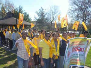 దాదాపు వంద కార్లతో ర్యాలీ నిర్వహించారు. జై తెలుగుదేశం, వర్ధిల్లాలి చంద్రబాబు నాయకత్వం, ఆయన పాదయాత్ర వంటి నినాదాలు మారుమోగాయి. చంద్రబాబు నాయుడికి, ఆయన పాదయాత్రకు మద్దతు తెలుపుతూ ఆ తర్వాత ప్రసంగాలు సాగాయి. ఆంధ్రప్రదేశ్ నుంచి వచ్చిన కోడెల శివప్రసాద రావు, దేవినేని ఉమ, పయ్యావుల కేశవ్ వంటి తెలుగుదేశం పార్టీ నాయకులు ప్రసంగించారు. ఎన్నారైల మద్దతుకు వారు ఆనందం వ్యక్తం చేశారు.