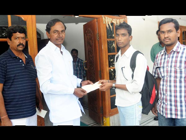ఈ మేరకు ఇటీవల కెసిఆర్ చేతుల మీదుగా విద్యార్థి సురేశ్ రూ.25 వేల చెక్కును అందుకున్నారు. ఈ కార్యక్రమంలో తెరాస ఎన్నారై సెల్ తెలంగాణ కో-ఆర్డినేటర్ జి. రఘురాం పాల్గొన్నారు.
