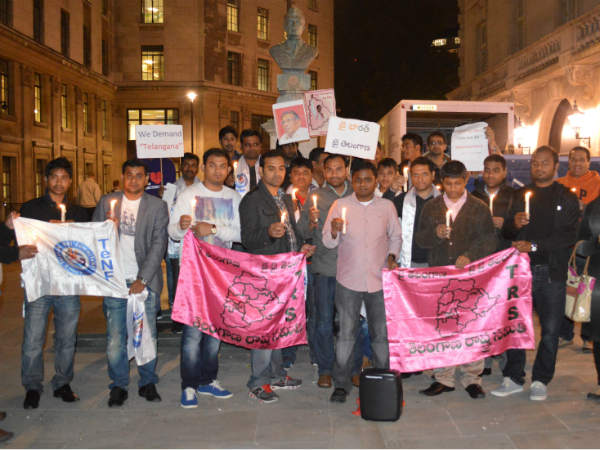 లండన్: తెలంగాణ జెఎసి ఈ నెల 29 వ తేదిన తలపెట్టిన "సకల జన భేరి" విజయవంతం చేయాలనీ తెలంగాణా వాదులకు పిలుపునిస్తూ, ఎన్నారై టి.ఆర్.యస్ సెల్, తెలంగాణ ఎన్నారై ఫోరం సంయుక్తంగా సెంట్రల్ లండన్ లోని నెహ్రు విగ్రహం వద్ద "కొవ్వత్తుల ప్రదర్శన" నిర్వహించారు. ముందుగా తెలంగాణా రాష్ట్ర సాధనలో అమరులైన బిడ్డలకు నివలర్పించి, తరువాత "జై తెలంగాణ" నినాదాలు చేశారు.