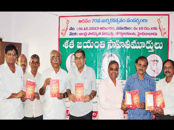 హైదరాబాద్: అభ్యుదయ రచయితల సంఘం (అరసం) 70వ వార్షికోత్సవ కార్యక్రమం ఆదివారం ఉత్సాహపూరిత వాతావరణంలో జరిగింది. ఈ సందర్భంగా ఏర్పాటు చేసిన సాహితీమూర్తుల శతజయంతి సభలో అనేక మంది సాహితీవేత్తలు పాల్గొన్నారు. హైదరాబాదు నగరంలోని ఆంధ్ర సారస్వత్ పరిషత్ హాలులో అరసం ఆధ్వ ర్యంలో జరిగిన శతజయంతి సాహితీమూర్తులు తుమ్మల వెంకట్రామయ్య, వట్టికోట ఆళ్వారుస్వామి, కాళోజీల స్ఫూర్తి సభలో పలువురు సాహితీవేత్తలు మాట్లాడారు.