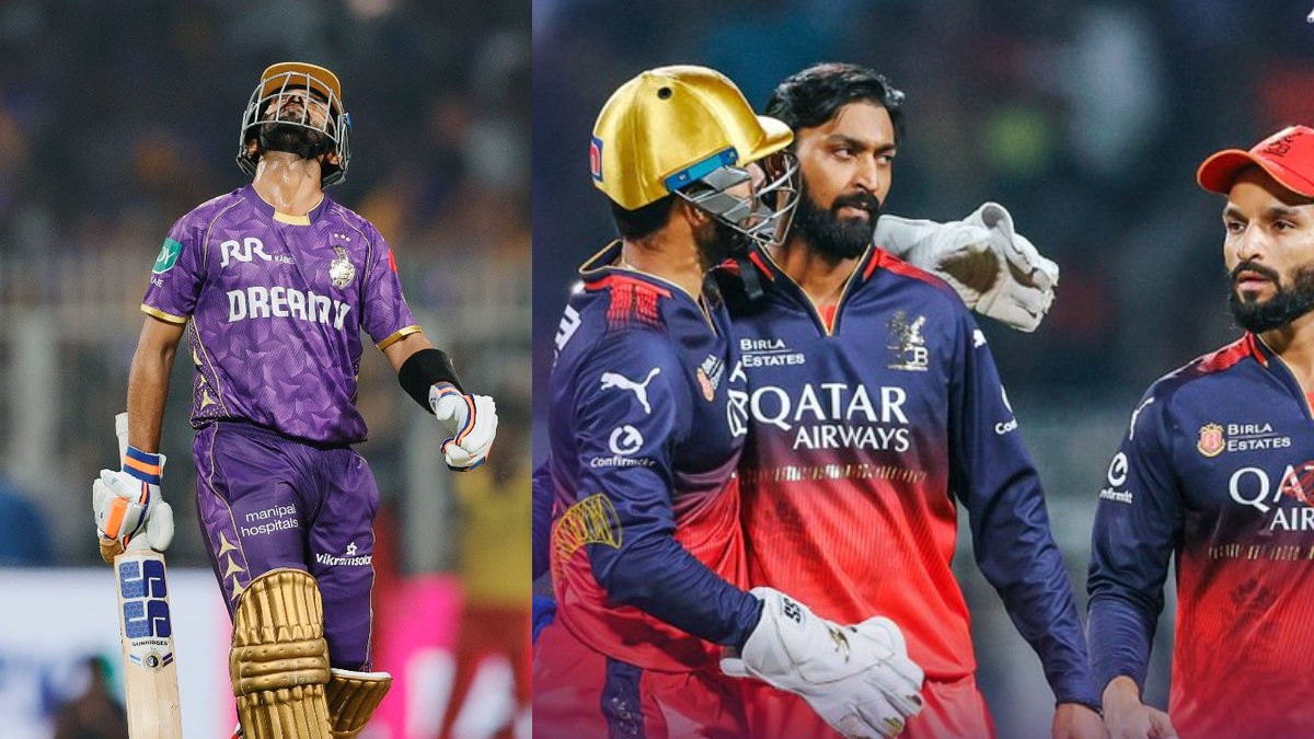 KKR vs RCB: ఐపీఎల్ 18వ సీజన్ మొదటి మ్యాచ్లో కేకేఆర్కు ఆర్సీబీ షాకిచ్చింది. మొదట అద్భుతంగా ఆడిన కేకేఆర్ బ్యాటర్లను అనంతరం ఆర్సీబీ బౌలర్లు కట్టడి చేశారు. ఐపీఎల్ 2025 ప్రారంభ మ్యాచ్ లో రాయల్ ఛాలెంజర్స్ బెంగళూరుతో జరిగిన మ్యాచ్లో మొదట బ్యాటింగ్ చేసిన కోల్కతా నైట్ రైడర్స్ 8 వికెట్లు కోల్పోయి 174 పరుగులు చేసింది. కేకేఆర్ బ్యాటర్లలోసునీల్ నరైన్ ఓపెనర్గా 26 బంతుల్లో 5 ఫోర్లు, 3 సిక్సర్లతో 44 పరుగులు చేయగా, అజింక్య రహానె 31 బంతుల్లో 6 ఫోర్లు, 4 సిక్సర్లు బాదాడు. కెప్టెన్ 56 పరుగులు చేయగా, అంగ్క్రిష్ రఘువంశీ 22 బంతుల్లో 2 ఫోర్లు, ఒక సిక్సర్ తో 30 పరుగులు చేశాడు. ఆర్సీబీ తరఫున కృనాల్ పాండ్యా 3 వికెట్లు, జోష్ హాజిల్వుడ్ 2 వికెట్లు పడగొట్టారు.