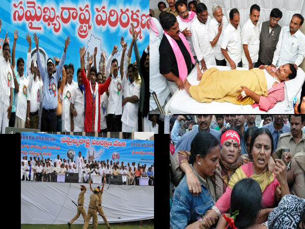 హైదరాబాదులోని ఎల్పీ స్టేడియంలో ఎపిఎన్జీవోలు నిర్వహించిన సేవ్ ఆంధ్ర ప్రదేశ్ వద్ద నినాదాలు చేసిన వ్యక్తిని కొడుతున్న దృశ్యం.