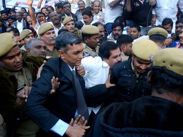 పలువురు తెలంగాణవాదులు ఢిల్లీలో మంగళవారం లోక్సత్తా పార్టీ అధ్యక్షులు, కూకట్ పల్లి శాసన సభ్యులు జయప్రకాశ్ నారాయణ కాలర్ పట్టుకున్నారు. పోలీసులు ఆయనను భద్రత మధ్య తీసుకెళ్లారు.
