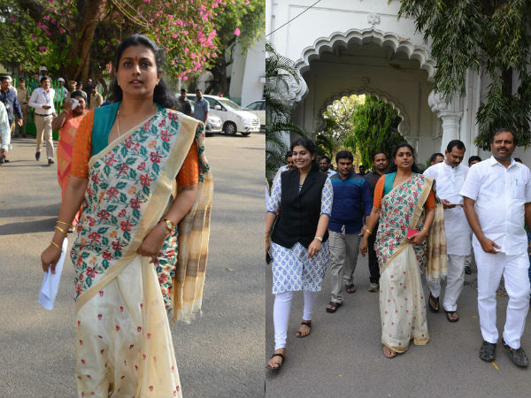 తమ వైయస్సార్ కాంగ్రెసు పార్టీ శాసనసభ్యులతో కలిసి రోజా అసెంబ్లీ అవరణలో ఆనందంగా కనిపించారు. తాను శుక్రవారంనాడు అసెంబ్లీ సమావేశానికి హాజరవుతానని చెప్పారు.